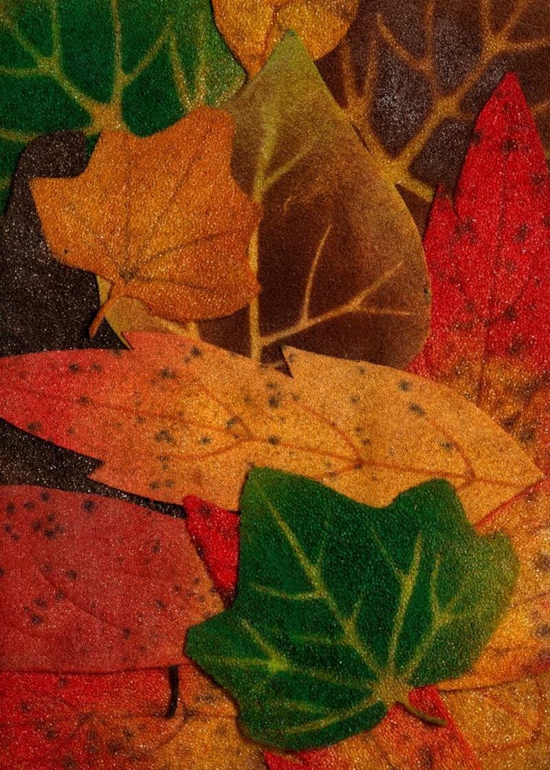 Dalla metà degli anni ’60 a oggi, i Tappeti-natura (a metà strada tra pittura e scultura) sono un segno di riconoscimento del suo lavoro per parlare di una natura intima e familiare che risuona in noi. Ben prima di certi problemi ecologici, Gilardi si preoccupava di rappresentare la natura non sotto forma di paesaggi ma piuttosto di frammenti, adottando uno sguardo orizzontale più vicino alle cose per mostrarci una natura catturata nei suoi minimi dettagli e per attirare la nostra attenzione su ciò che non guarderemmo altrimenti. Protagonista delle prime mostre di Arte Povera alla fine degli anni ‘60, Gilardi ha privilegiato parlare della natura non utilizzando materiali elementari ma usando un materiale industriale e contemporaneo, il poliuretano espanso, che taglia, sistema, incolla e dipinge per rivelare una natura spinta oltre la realtà con i suoi colori brillanti, vibranti e gioiosi.