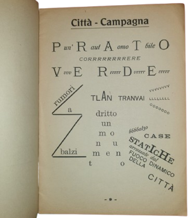 Bibliografia: Berghaus, p. 41; Cammarota, 333.4; Falqui, p. 73; Salaris, p. 57. Cfr. AA. VV., Edizioni elettriche. La rivoluzione editoriale e tipografica del futurismo, p. 85; AA. VV., Marinetti futurista, p. 404; Baffoni, Futurismo prodromo del centenario, p. 172; Benedetto, Futurismo 100 x 100, p. 166; Bohn, The Other Futurism, p. 31; Caruso, Tavole parolibere futuriste, p. 361; Crispolti, Futurismo: i grandi temi, p. 307; Gazzotti-Villari, Futurismo e Dada, p. 114; Gherarducci, Il Futurismo italiano: materiali e testimonianze critiche, p. 142; Guzzetta, Tra Simbolismo e Futurismo, p. 117 Nazzaro, Introduzione al Futurismo, p. 16; Godoli, Dizionario del Futurismo, p. 760a: “Tra gli esiti maggiori del sintetismo e del paroliberismo futurista per nitidezza grafica e costruzione iconoica del lessema”; Masnata, Poesia Visiva: storia e teoria, p. 168; Viazzi, I Poeti del Futurismo, p. 35.