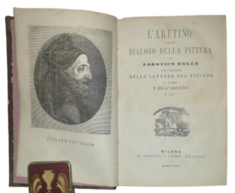 Bella raccolta di ottime e curate edizioni: Il famoso “Dialogo della pittura” dell' Aretino che glorifica Tiziano Vecelio. Al termine del dialogo, si trovano le lettere scritte da Tiziano a vari personaggi: Il Doge di Venezia, il marchese di Mantova, il re Filippo d’ Inghilterra, il cardinale Farnese, le lettere dall’ Aretino al pittore ed in ultimo a Veronica Gambara. Il “Ragionamento” del Giovio è uno dei principali trattati di imprese del Rinascimento italiano. L’ edizione presenta, relativamente ai tempi in cui apparve, anche un interesse filologico, in quanto vengono date in appendice le aggiunte, le varianti e le correzioni al “Dialogo delle Imprese” gioviano presenti nelle edizioni del Giolito de’ Ferrari del 1557 e del Rovillio di Lione del 1574. La prefazione e le cure dell’ edizione sono di Carlo Tèoli. Composta tra l’ agosto e il settembre del 1551, l’ opera, strutturata in forma di dialogo tra l’ autore e Ludovico Domenichi, fu pubblicata postuma a Roma per Antonio Barrè nel 1555, con dedica a Cosimo de' Medici. Subì rimaneggiamenti, censure e interpolazioni da parte dei curatori, soprattutto il Ruscelli, che addirittura la arricchì di alcune aggiunte, ma, nonostante tali interventi, conobbe ampia fortuna, come testimoniano le numerose citazioni di quasi tutti i trattatisti di imprese, da Scipione Ammirato a Emanuele Tesauro.