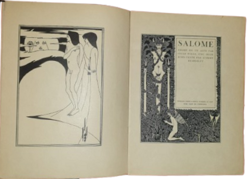 La Salomè di Wilde fu scritta e pubblicata in francese nel 1893 e l’ anno successivo vide la pubblicazione della traduzione inglese di Lord Douglas; a Beardsley fu chiesto di illustrarla, ma l’ editore accettò solo 10 delle 16 tavole proposte. Sarah Bernhardt avrebbe dovuto interpretare il ruolo di Salomè a Londra e le prove per il debutto dell’ opera sui palcoscenici londinesi iniziarono nel 1892, ma furono interrotte quando la censura del Lord Ciambellano si scagliò contro Wilde vietando la Salomè perché portava dei personaggi biblici sul palcoscenico.