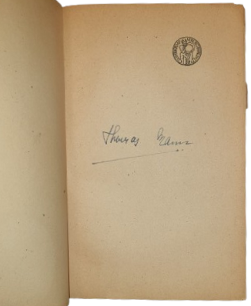 Berlin-Schöneberg, Suhrkamp Verlag Vorm. S. Fischer, 1948. In-8° (20,5 cm x 13 cm). Pp. 51. Brossura cartonata editoriale a stampa. All‘ occhietto, una bella ed elegante firma autografa di Thomas Mann in corsivo a stilografica blu. Esemplare in ottimo stato di conservazione.