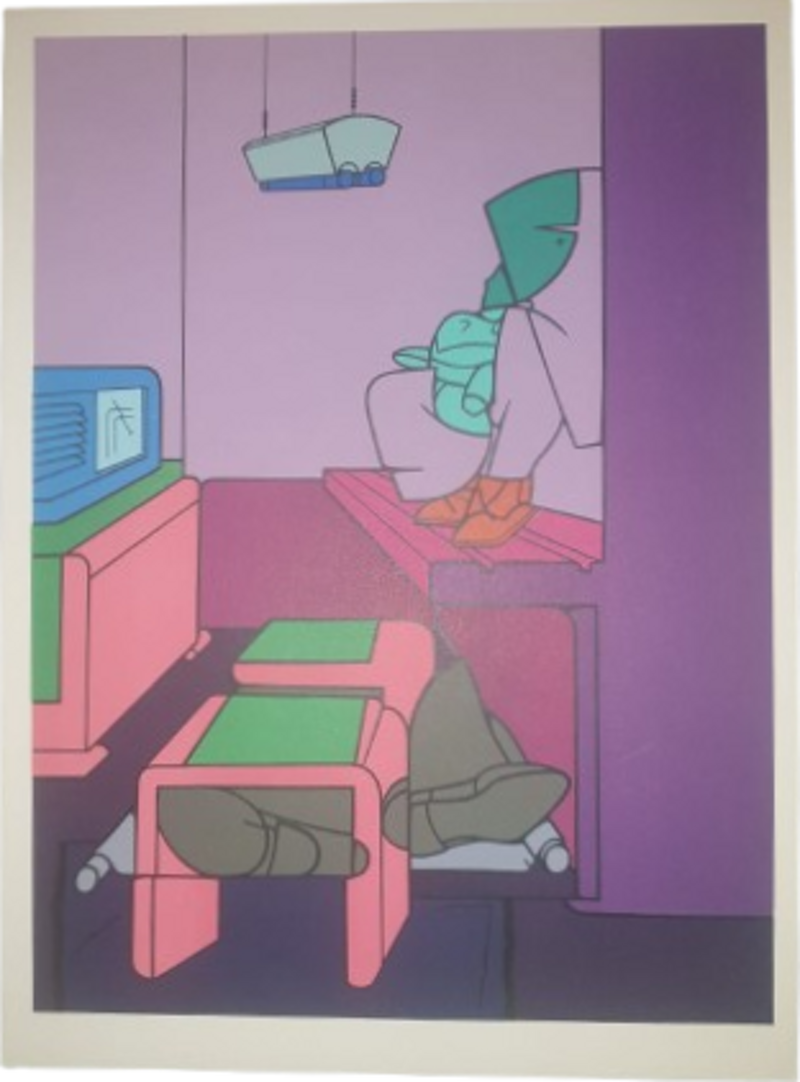 Valerio Adami è emerso con la sua opera negli anni '60, un periodo segnato dall’ ascesa della Pop Art, dell’ astrattismo e della sperimentazione grafica. Formatosi all’ Accademia di Belle Arti di Bologna e segnato dall’ incontro a Venezia con Oskar Kokoschka, ha sviluppato uno stile personale estremamente riconoscibile presentando soggetti fortemente stilizzati con ampie e vibranti aree piatte di colore colore delimitate da linee scure, fondendo figurazione e astrazione. Nel suo lavoro si pone il problema del recupero della figurazione risolta, secondo i moduli della Pop Art americana e in particolare di Roy Lichtenstein, sviluppando una sorta di racconto a fumetti fantastico e ironico dove in interni spersonalizzati si dispongono oggetti banali, assunti come simboli, anche sessuali, della modernità.. Adami interroga la percezione dello spazio, la narrazione pittorica e il ruolo dell’ immagine, collocando il suo lavoro nel contesto dinamico e internazionale dell’ arte moderna del dopoguerra toccando la storia, la politica, la mitologia e la letteratura europea, Nel 1975, il filosofo Jacques Derrida utilizzò la sua opera nel suo celebre saggio "+R: Into the Bargain" per discutere di "narrazione, riproduzione tecnica, ideologia, fonema, biografema e politica".