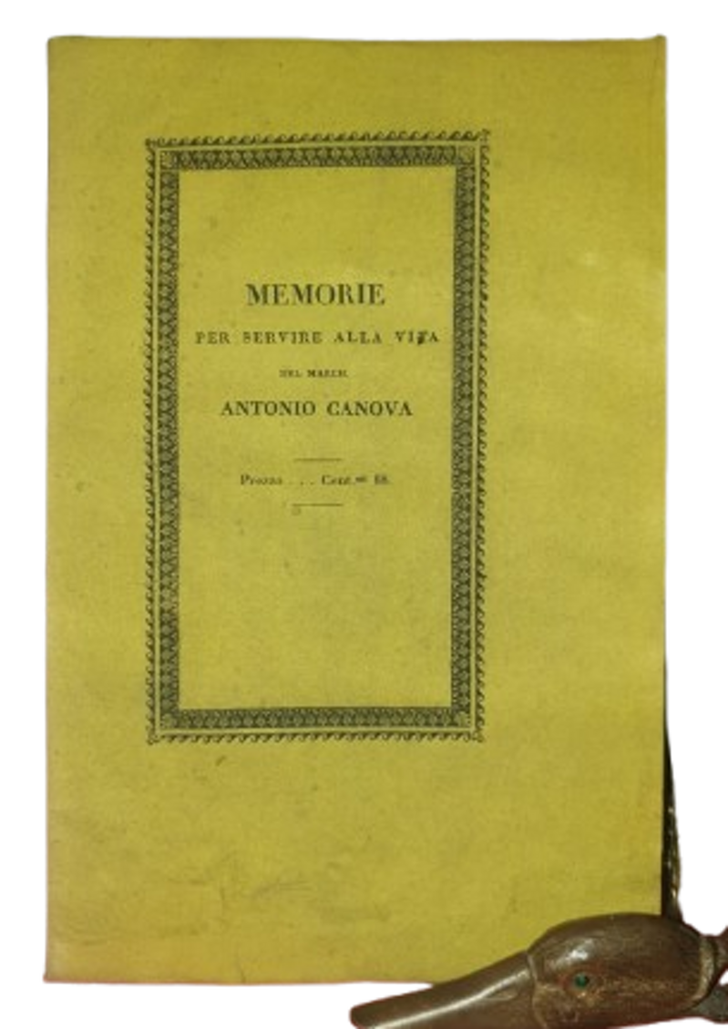Prima edizione assai rara, tanto più così nella sua veste editoriale originale. L’ opera, edita a Venezia dalla Tipografia di Alvisopoli, è stata dedicata da Falier, amico d’ infanzia di Canova, a Lady William. Questa importante biografia del patrizio veneziano Giuseppe Falier offre uno sguardo dettagliato sulla vita di Canova, dalla sua fanciullezza fino alla sua ascesa come artista di fama internazionale, mettendo in luce il suo rapporto con l’ arte, la politica e la società del suo tempo.