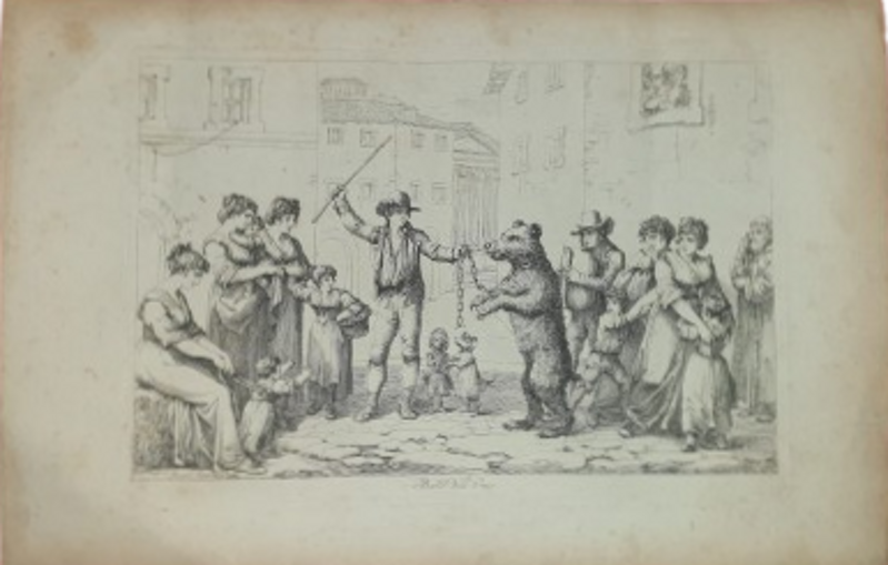 Nell’ Ottocento, il ballo dell'orso era una tradizione popolare variegata e complessa con un profondo significato simbolico, simboleggiava il momento del passaggio tra il freddo e l’ auspicato ritorno di una primavera generosa, anche se talvolta era accompagnato da forme di divertimento più licenziose fu scenario anche di una sorta di ballo dell'orso, a cui si associò anche un aspetto più licenzioso, proprio come il Ballo dell’ Orso che si teneva presso la Reggia di Caserta dove si organizzavano feste e succulenti banchetti. Si racconta che ad un certo punto della cerimonia, le donne nobili che avevano preso parte alla festicciola, si travestissero da pescatrici o predatrici, improvvisando una battuta di caccia. Gli esiti del ballo sono tutt’ oggi sconosciuti, ma si crede che addirittura terminassero con delle vere e proprie orge, alle quali partecipava anche il sovrano. Vi sono altri innumerevoli esempi ben noti in tutta Italia, tra questi: a volte un uomo in costume veniva condotto in catene e costretto a ballare, in altri casi un animale veniva incatenato e guidato a ballare per le case e le piazze durante il Carnevale, seguendo un’ usanza che coinvolgeva la comunità intera riprendendo il tema di antiche leggende popolari che descrivevano come gli orsi venissero “addomesticati” e resi mansueti dal vino ben integrandosi con la popolazione tutta. Le stampe del Pinelli ben rappresentano quest’ usanza a Roma e nel suo contado.